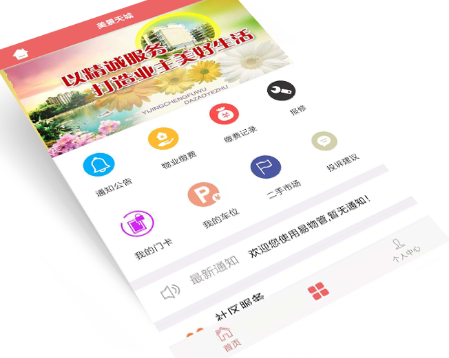 易物管平台是一套符合物业信息化管理的系统,以客户(业主,租客、住户)为核心,将物业管理过程中的客户档案、物业收费、物业服务、设备管理、巡更管理、报修管理、租房管理等业务进行有效整合,实现物业企业对核心业务的管控,提高企业管理效率。并应用手机APP、微信公众号方便业主接收物业通知、账单查询、费用交纳、社区服务等,使业主生活更便捷,为物业企业提升品牌形象,加强社区住户的满意度,同时为物业公司拓展更多的盈利途径!