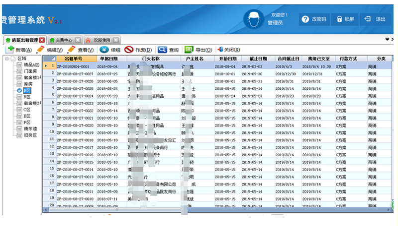 管理每个商铺对应的出租信息,包括房号、出租开始日期、合同截止日期、保证金等,到期自动预警!