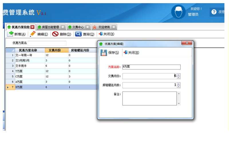 自定义系统的交费优惠方案,可以设置交费的周期和赠送周期,提供灵活多样的营销方案!