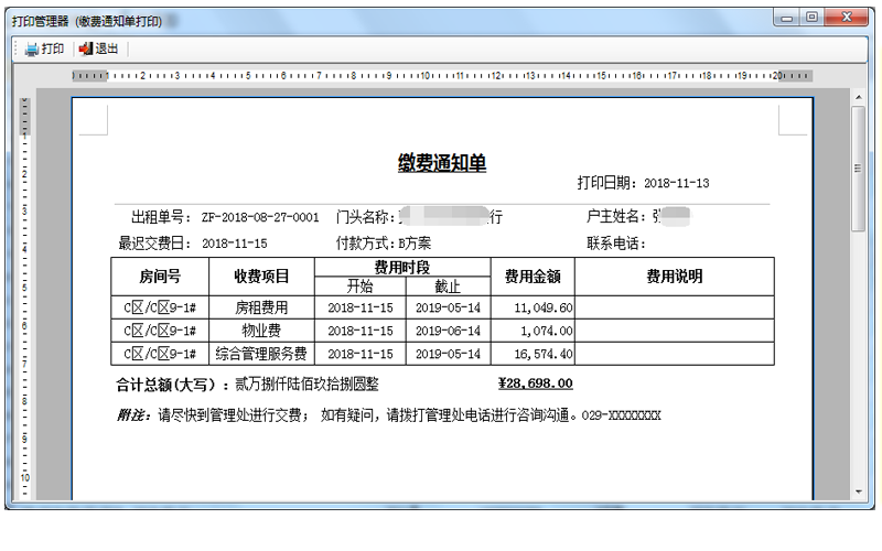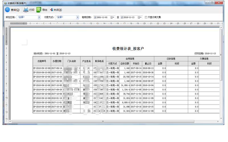 提供丰富的报表查询,收费报表、欠费报表、押金报表、缴费通知单打印等!!
