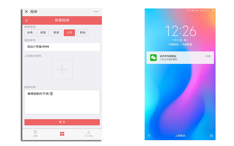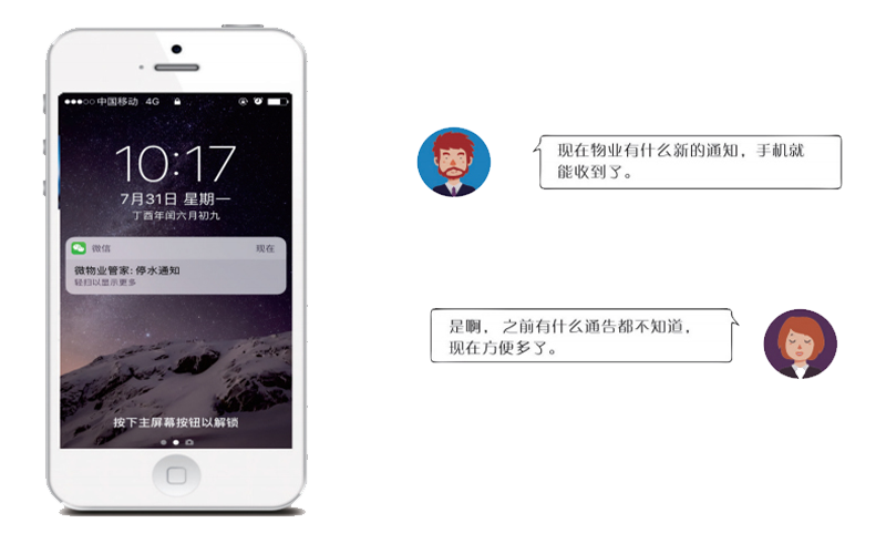 自动推送欠费账单,业主可以在手机上直接缴费,停水停电通知通过微信直接发送给业主!